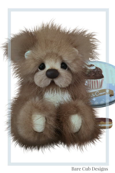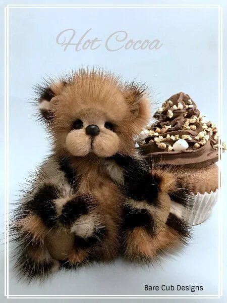 Hot Cocoa has a hand sculpted clay nose, black glass eyes, with white accents and has been scissor sculpted to perfection for many hours to create those signature Bare Cub Designs fluffy cheeks!