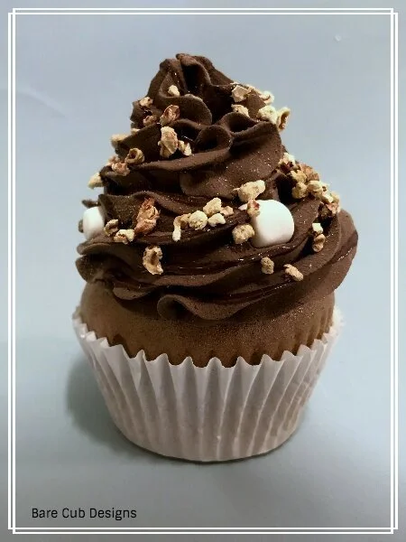 Hot Cocoa comes with a life-size 4 inch beautiful handmade faux “hot chocolate and marshmallow adorned cupcake.